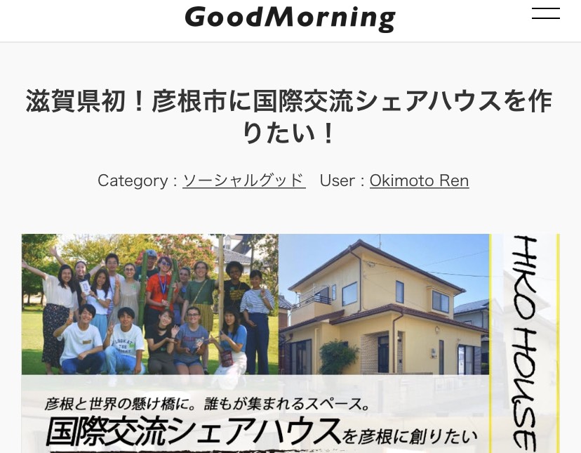 「Yuyaさん!ついに物件が決まり、彦根で国際交流シェアハウスのクラウドファンディングを始めました!」